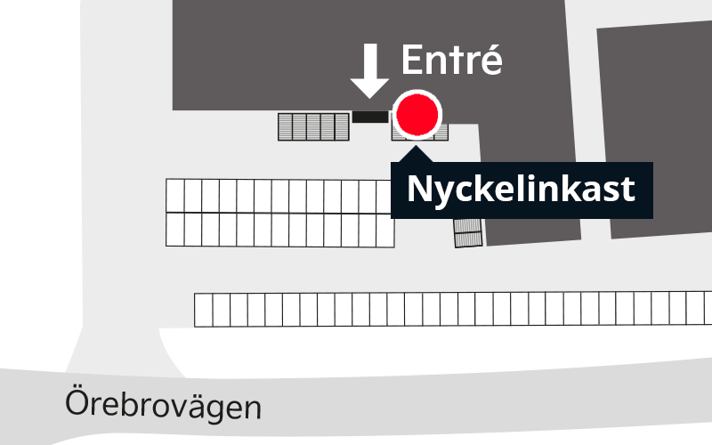 Nyckelinkastet hittar du till höger om entrén. Det är en rund cylinder med en Nyckelinkast-skylt ovanför.