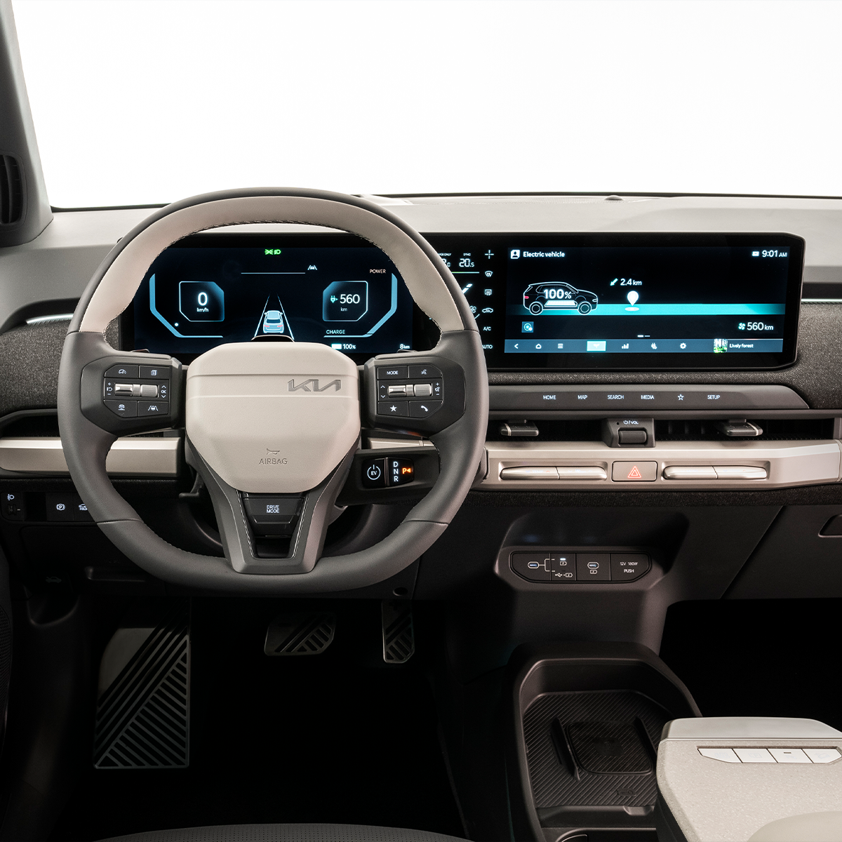 - 2×12.3″ + 1×5.3″ skärmar inklusive navigationssystem, DAB-radio samt Kia Connect