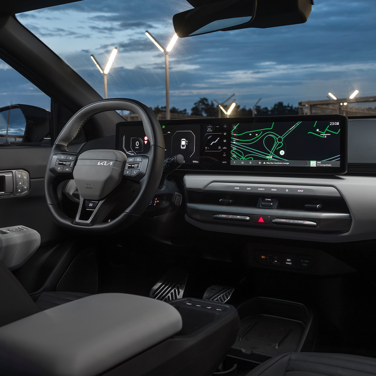 • 2×12.3″ + 1×5.3″ skärmar inklusive navigationssystem, DAB-radio samt Kia Connect